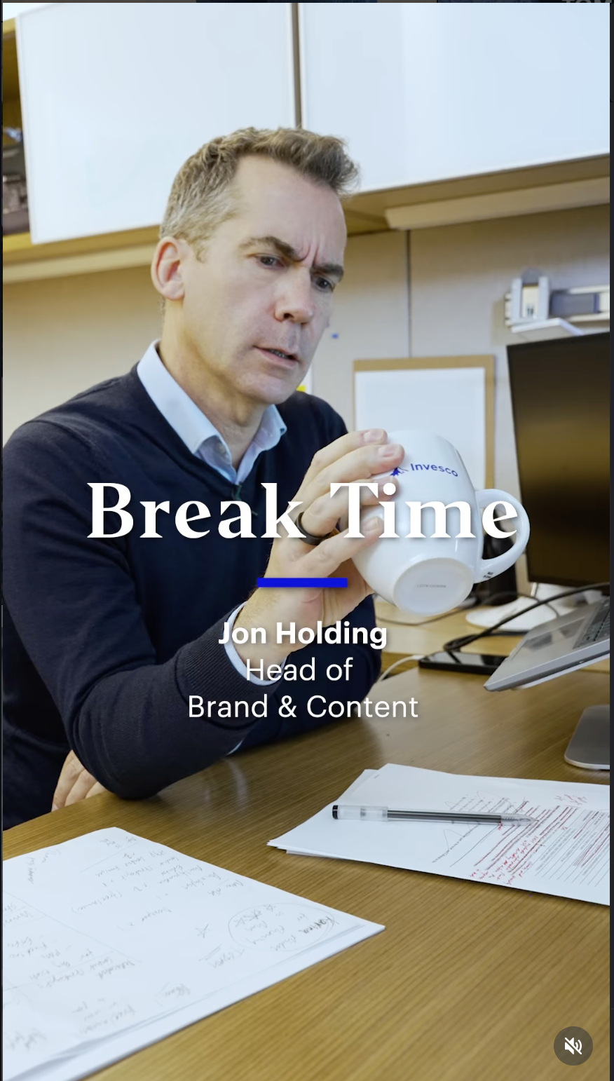 One of my biggest projects at Invesco was helping launch the Elevator pitch and Break Time video series. The goal for this video series was to help showcase key business offerings from Invesco in a fun and engaging format. Since 2024, I’ve helped produce, edit and publish more than 30 videos across all of Invesco’s social accounts. In 2025, the Break Time video series earned gold at the Financial Communications Society awards.